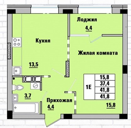 Площадь от 41.8 м2
