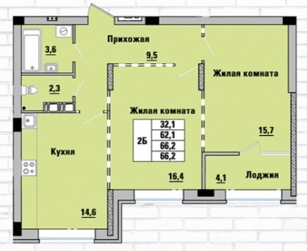 Площадь от 66.2 м2
