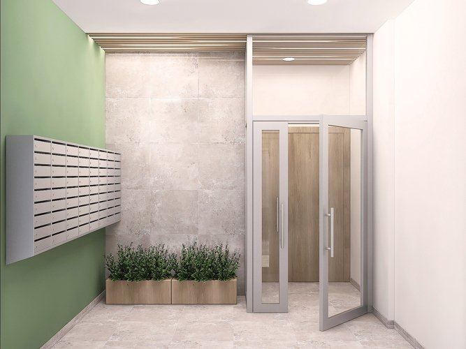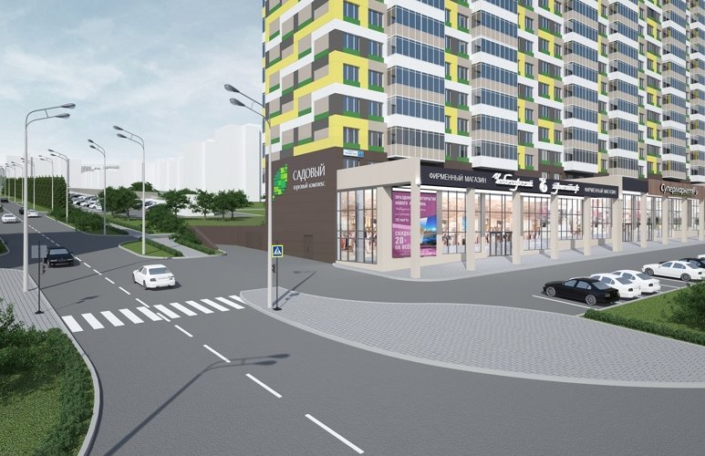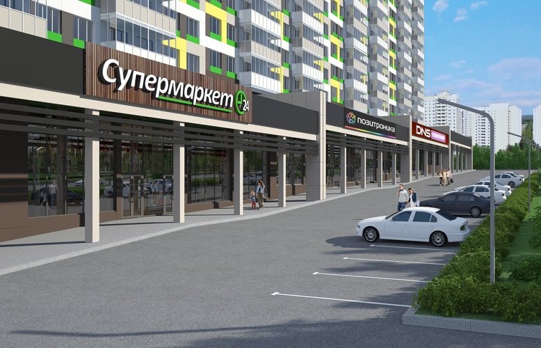 Для удобства жильцов на первом этаже располагаются помещения под магазины.