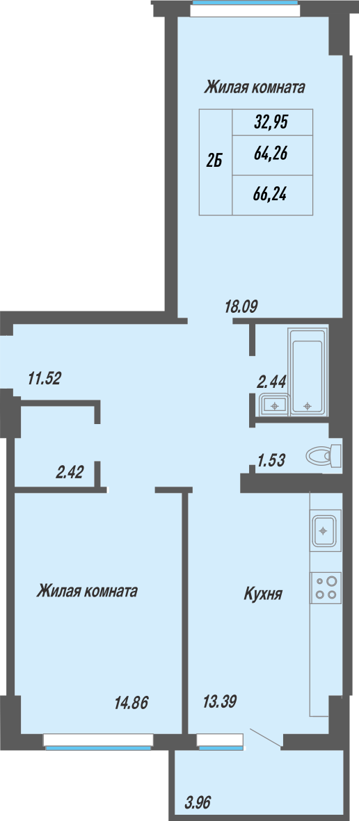 Площадь от 66.24 м2