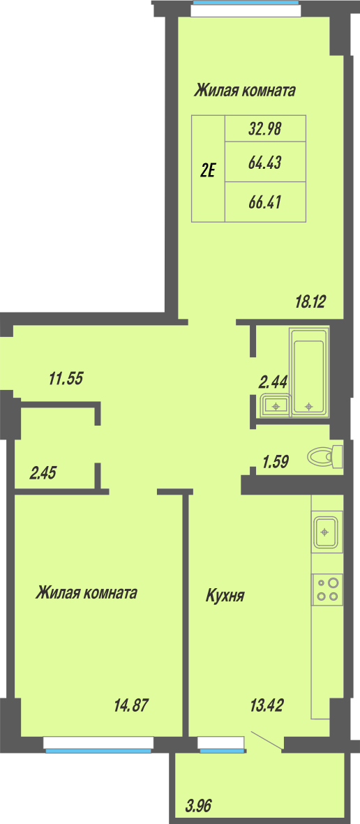 Площадь от 66.41 м2