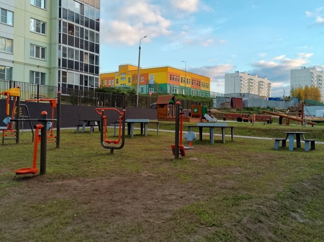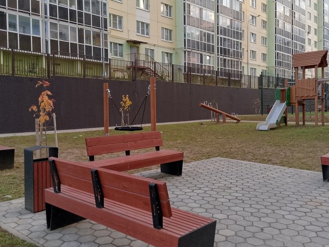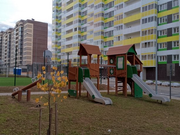 Во дворе домов созданы все условия для детских игр и занятий спортом, а также зоны отдыха под открытым небом.