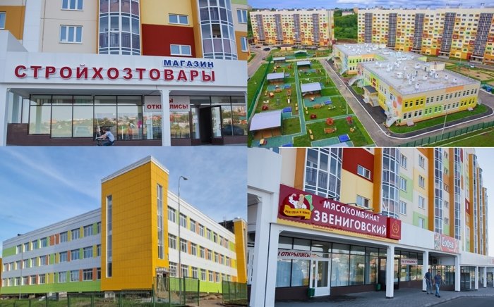 Действующая современная школа на 1600 учеников находится в соседнем микрорайоне «Грушевый», несколько детских садов уже построено и введено в эксплуатацию в шаговой доступности.