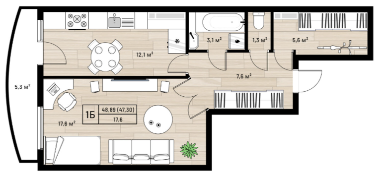 Площадь от 48.89 м2