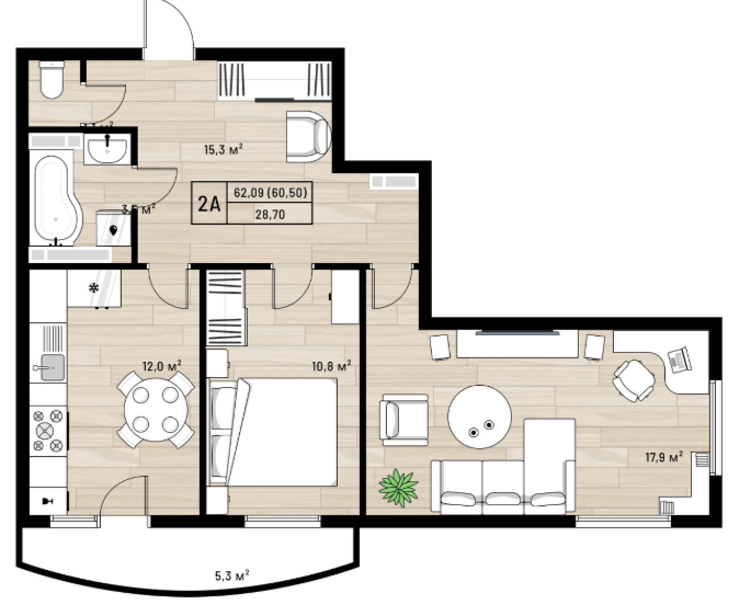 Площадь от 62.09 м2