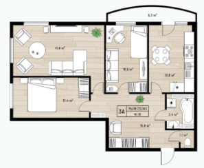 Площадь от 75.09 м2