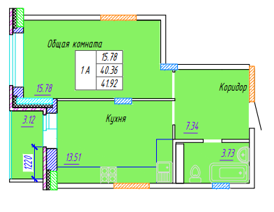 Площадь от 41.92 м2