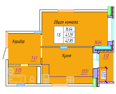 Площадь от 42.85 м2