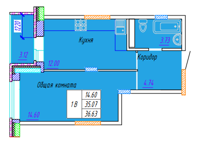 Площадь от 36.44 м2