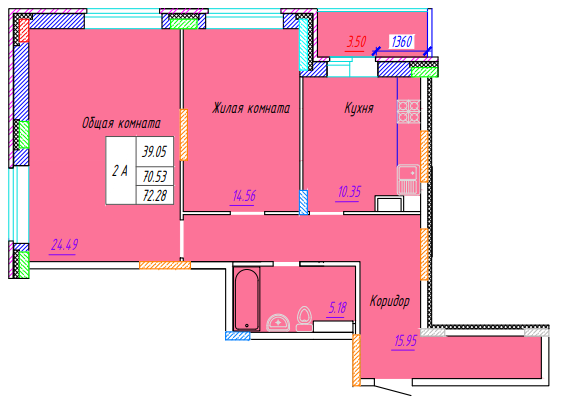 Площадь от 72.28 м2