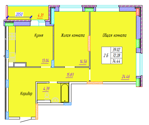 Площадь от 74.44 м2