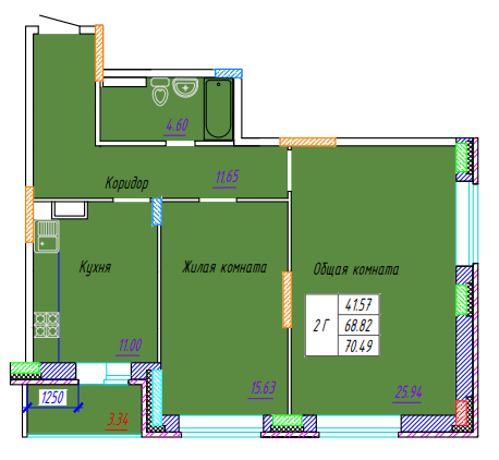 Площадь от 70.49 м2