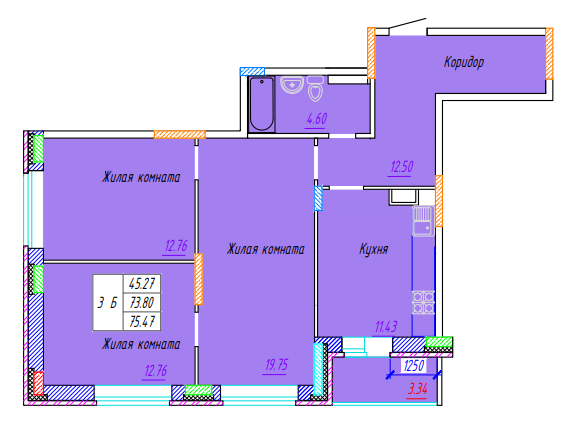 Площадь от 75.47 м2