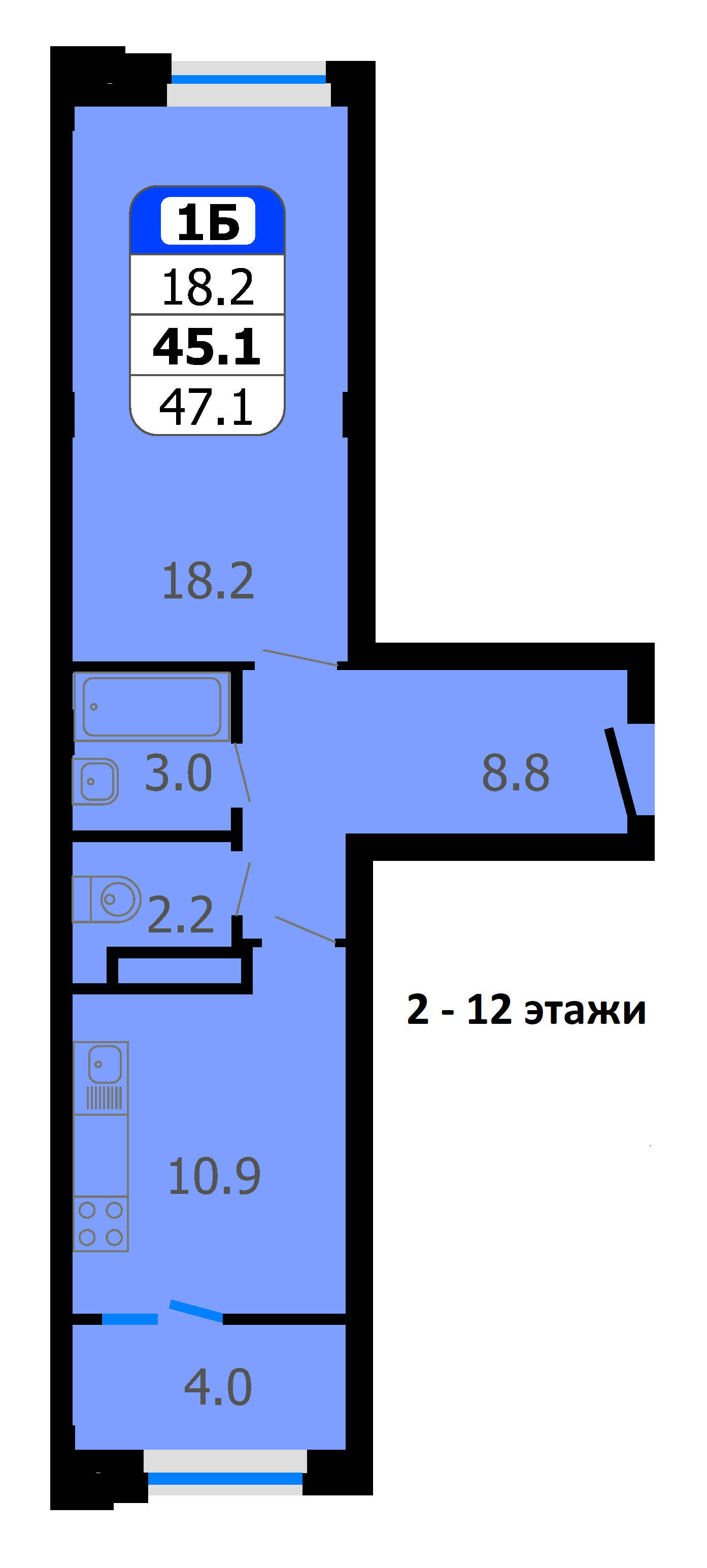 Площадь от 45.8 м2