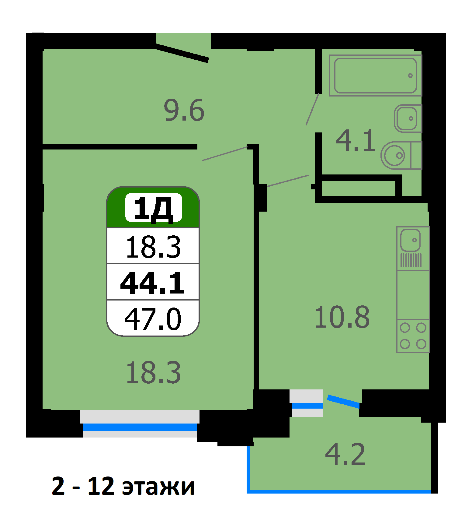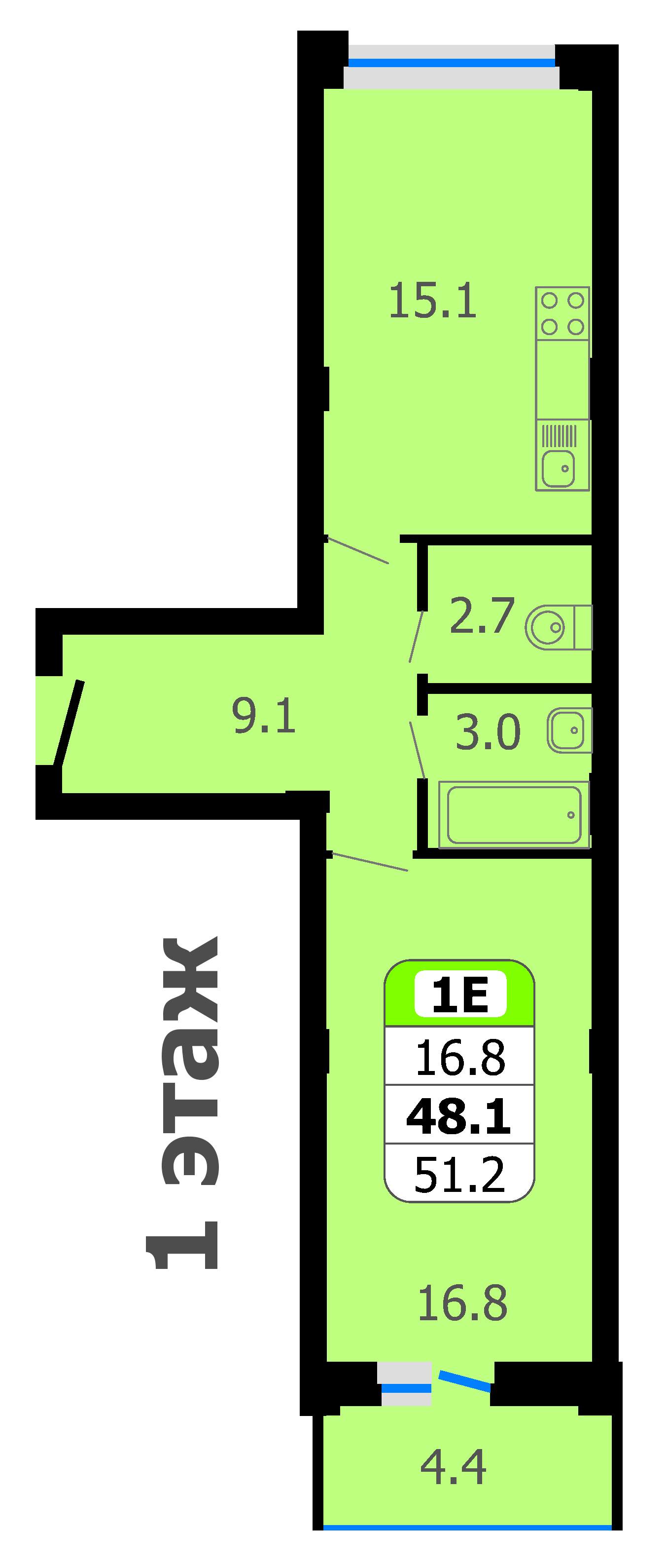 Площадь от 44.1 м2