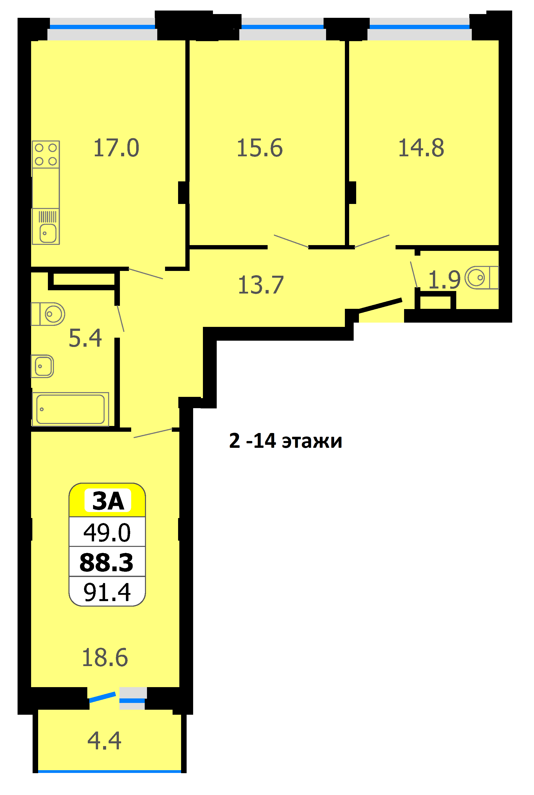 Площадь от 88.3 м2