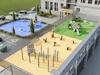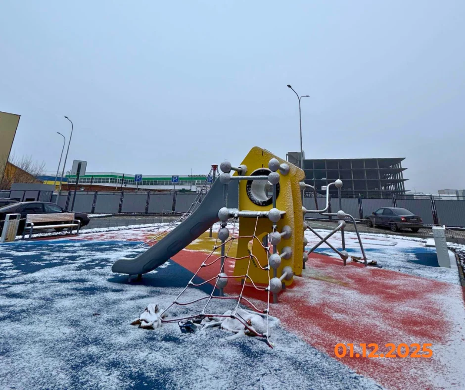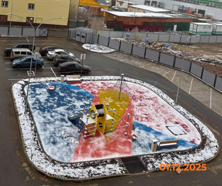 Современные игровые зоны внутри закрытого двора, безопасность детей