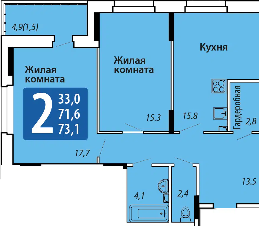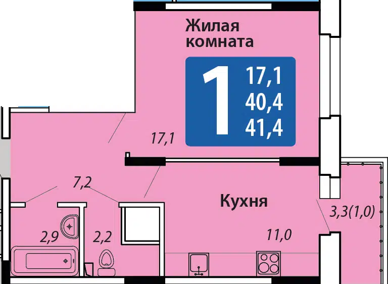 Площадь от 41.3 м2