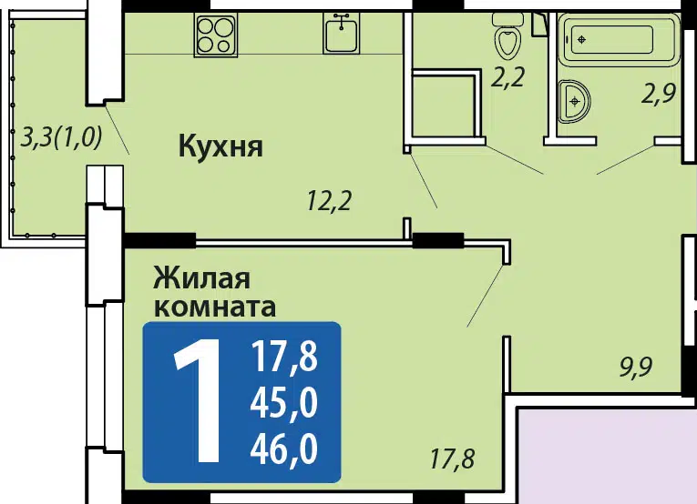 Площадь от 45.8 м2