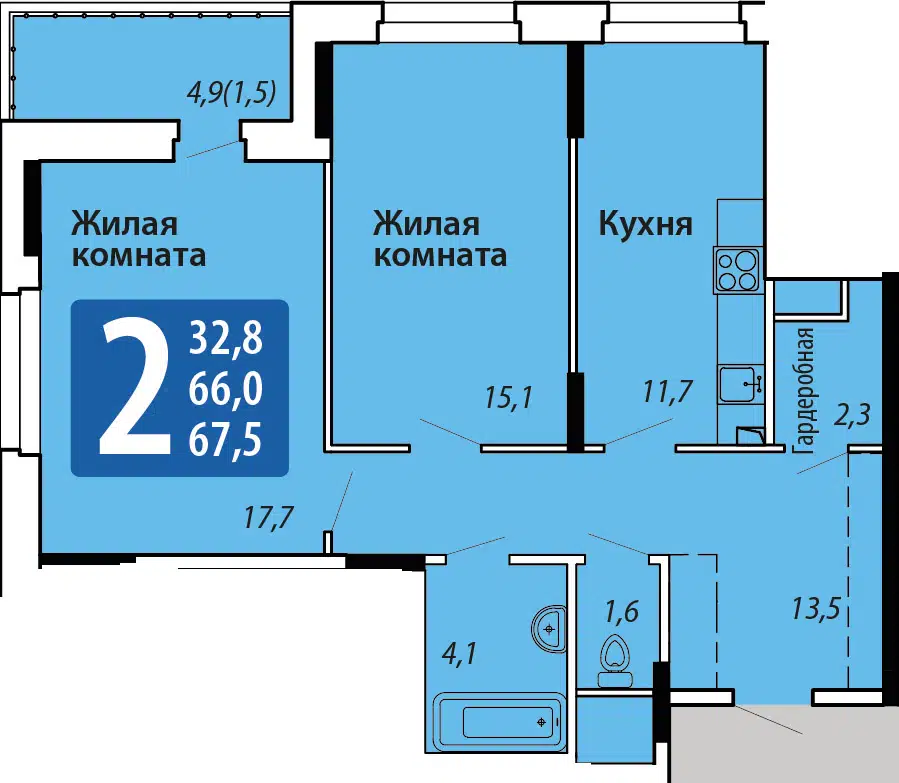 Площадь от 67.5 м2