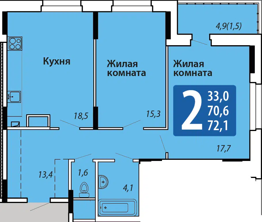 Площадь от 72.1 м2