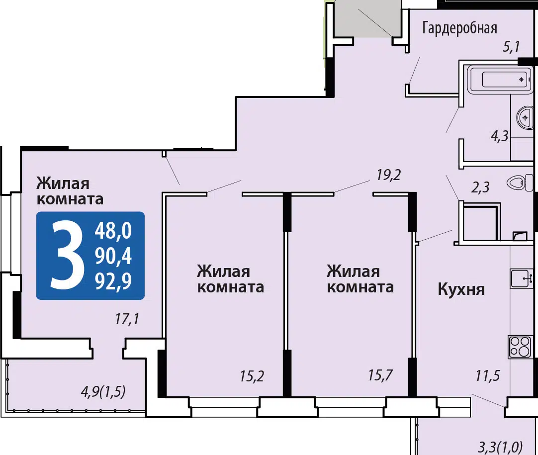 Площадь от 92.6 м2