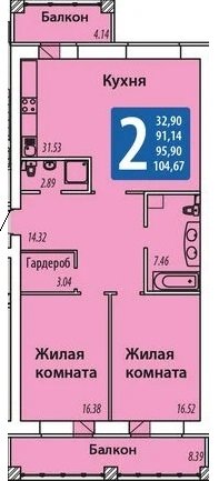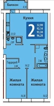 Площадь от 96.28 м2